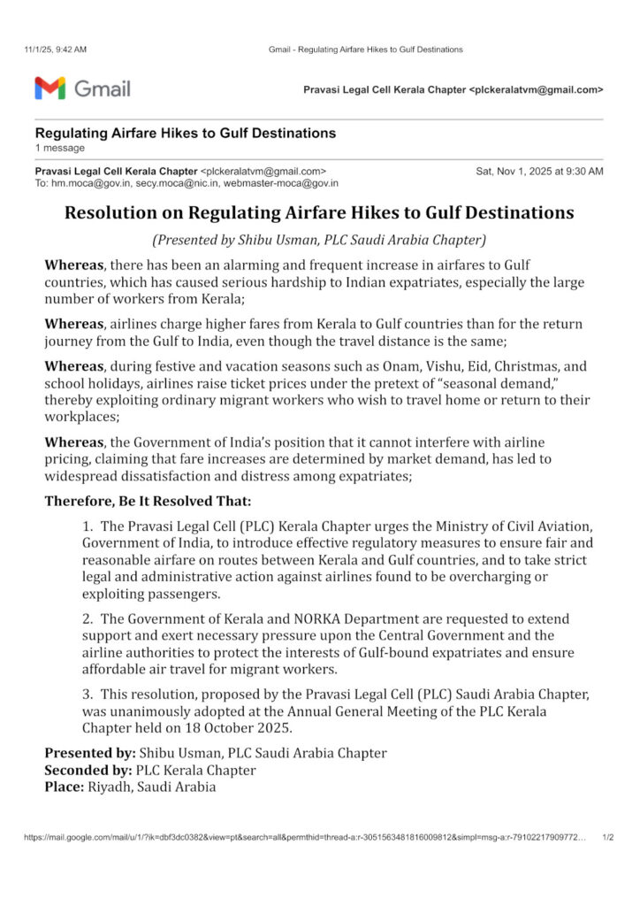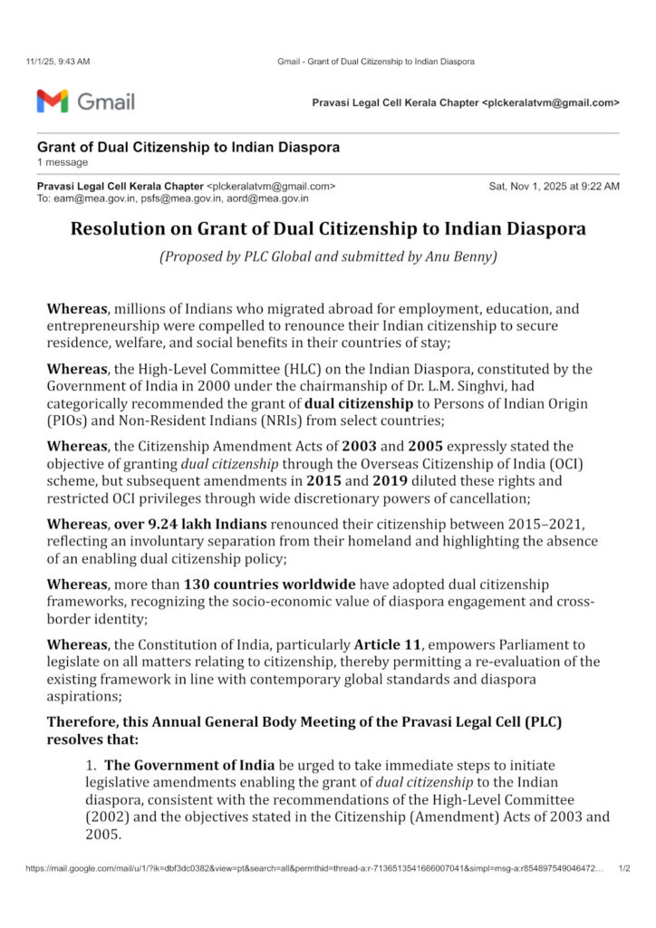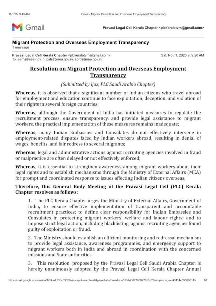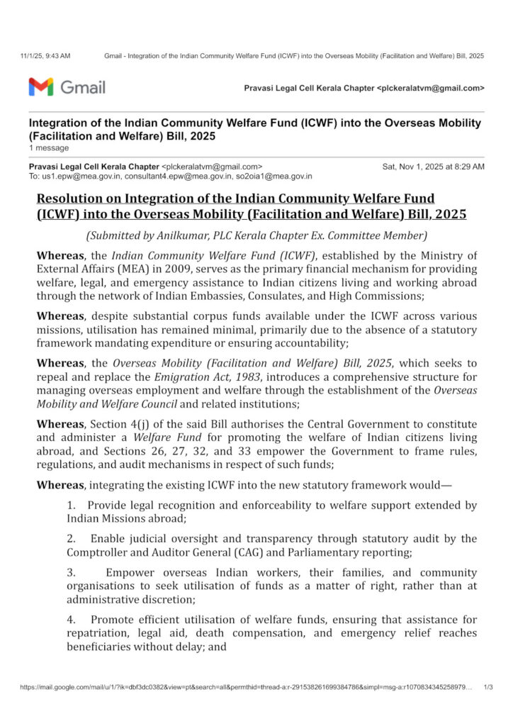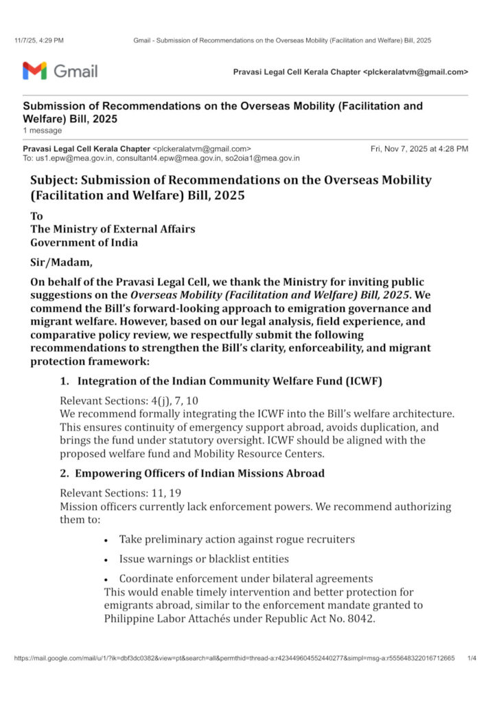 Submission of Recommendations on the Overseas Mobility (Facilitation and Welfare) Bill, 2025