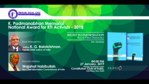 K. Padmanabhan Memorial RTI Lecture and National Award (4:30 pm – 6.00 pm | 27 January, 2019 | Constitution Club of India, New Delhi)